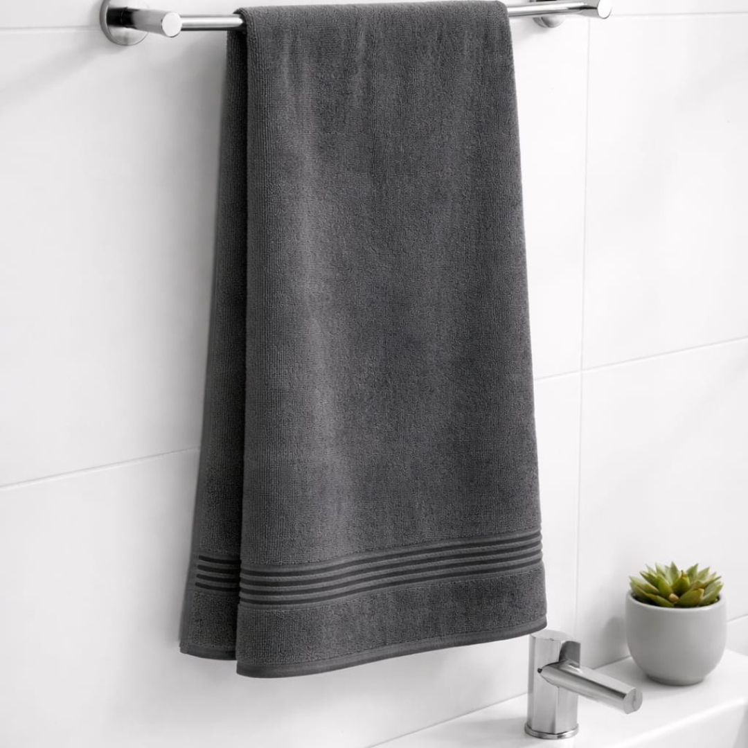 With a heavy 550 GSM weight, it delivers superior thickness, durability, and quick moisture absorption, making it ideal for everyday use or premium hospitality needs. The elegant gray shade adds a modern, sophisticated touch to your bathroom décor. Designed for comfort, performance, and long-lasting quality, this towel brings true spa-like luxury to your home.